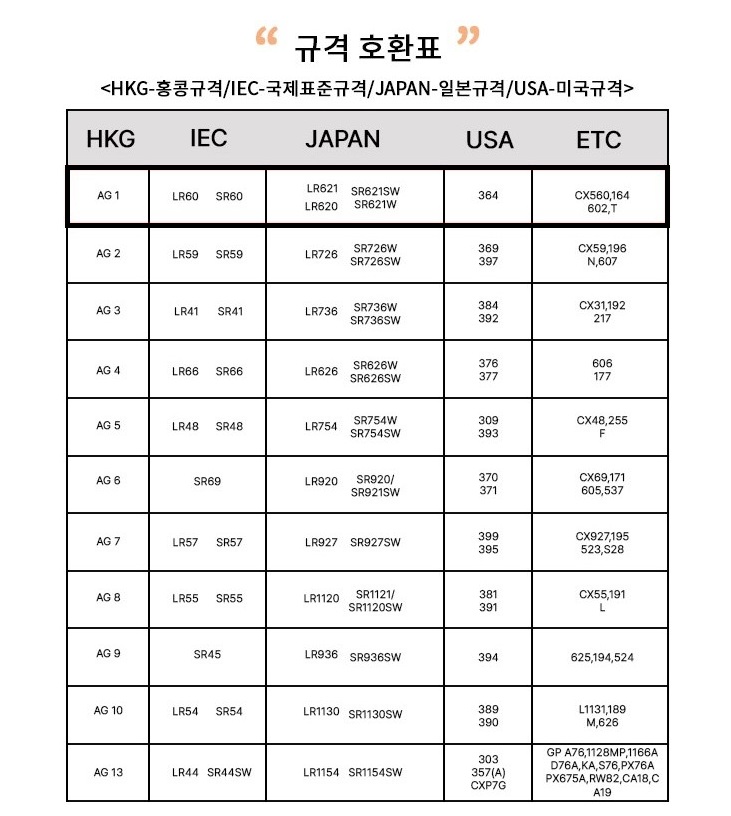 5알 AG1 건전지 배터리 _ 364A CX60 호환 ₩2,000